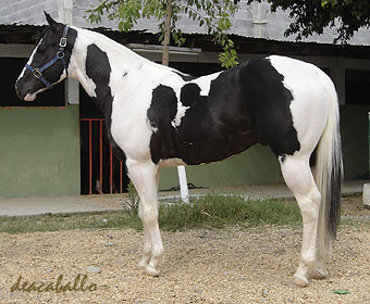 Tordo. Mezcla de pelos blancos y negros en la crin y el cuerpo.